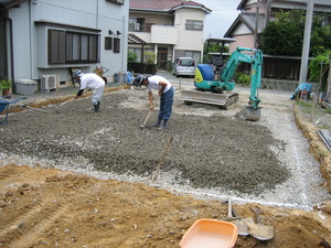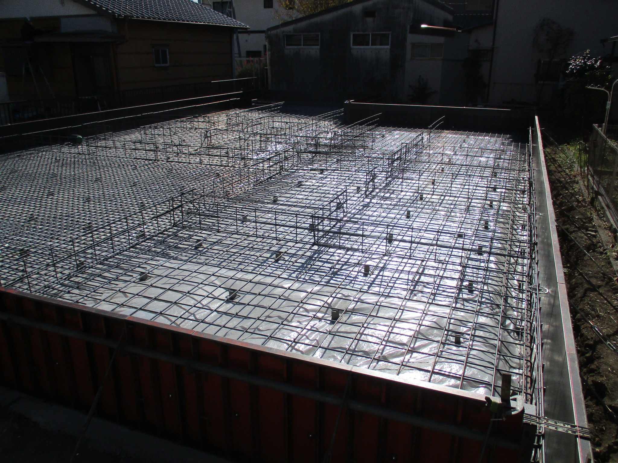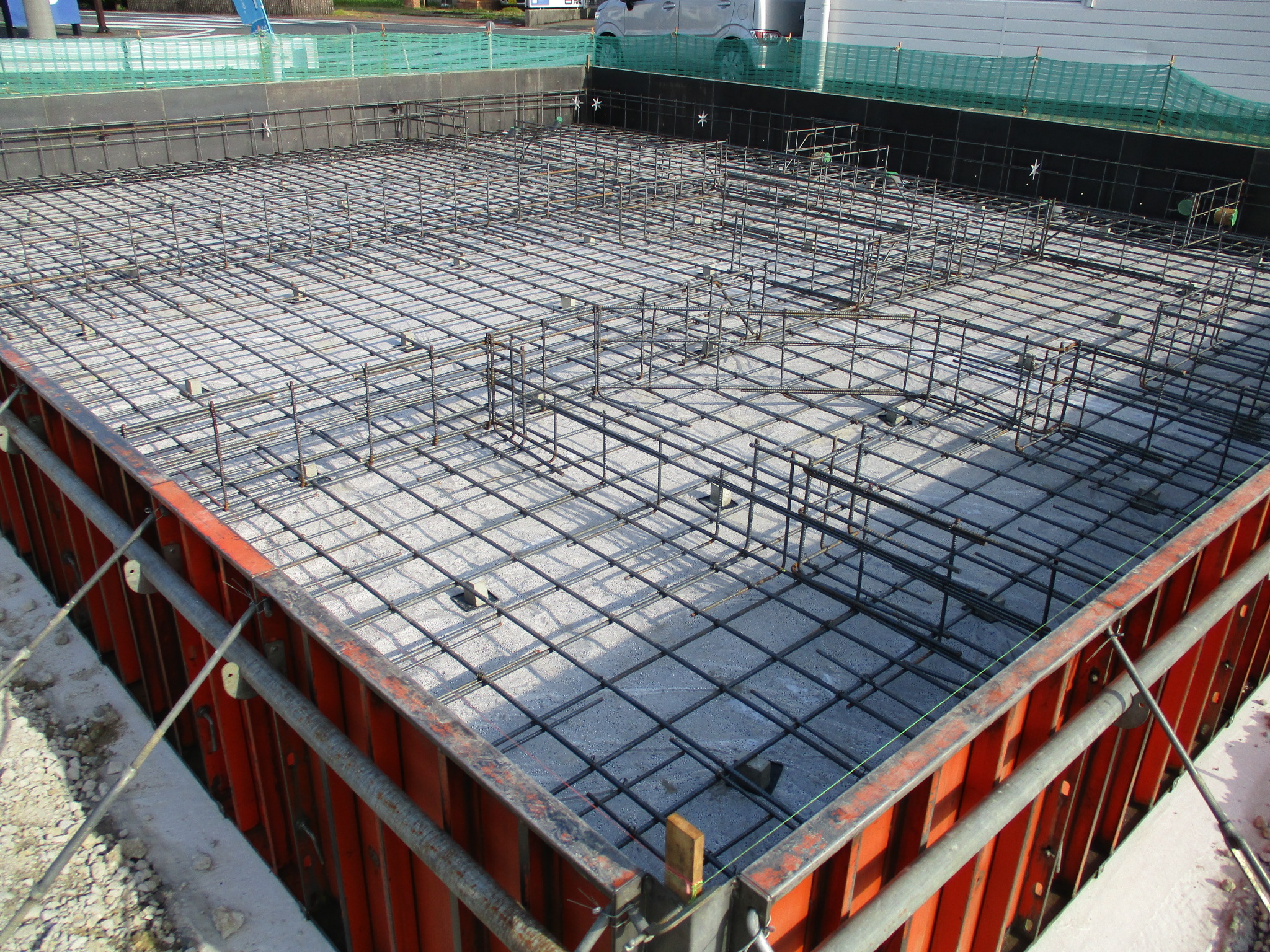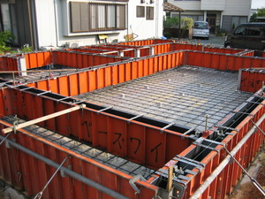 基礎工事はコンクリートを流す前段階の鉄筋,型枠等がかなり重要な部分を占めています。