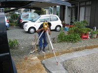 そして、当社が遣り方を行わない理由・・・トランシットという測量機器でミリ単位の正確な位置を出していき ます。